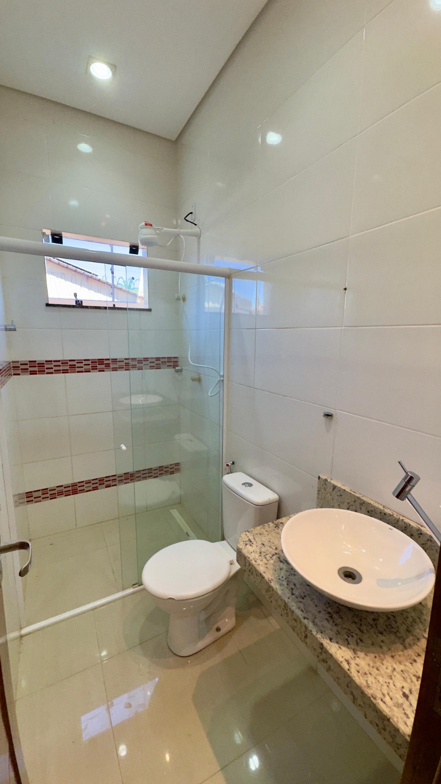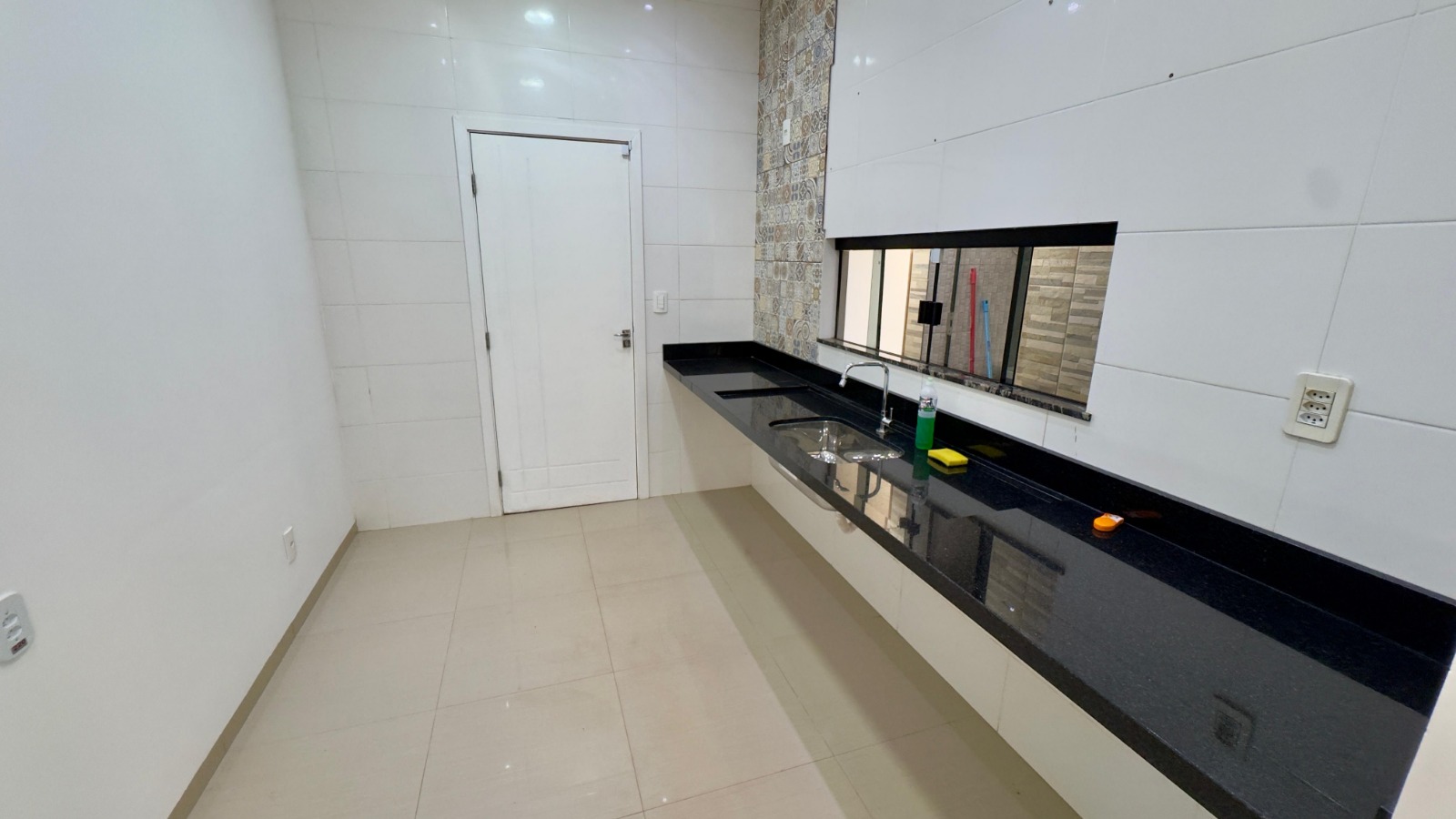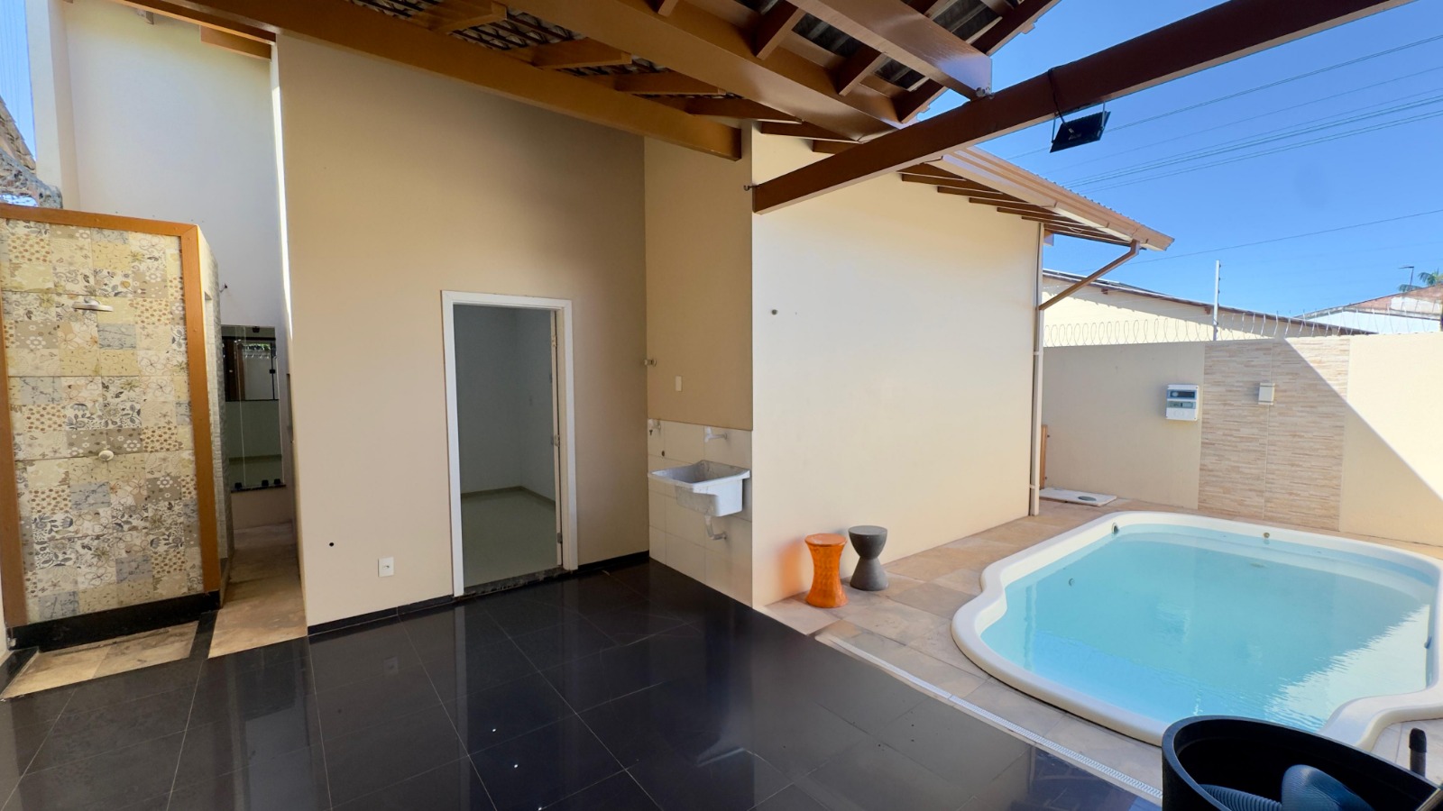 Dependências: ¾ sendo uma suíte, sala de estar, sala de jantar, cozinha, banheiro social, área de serviço, garagem, quintal com edícula, churrasqueira e piscina.